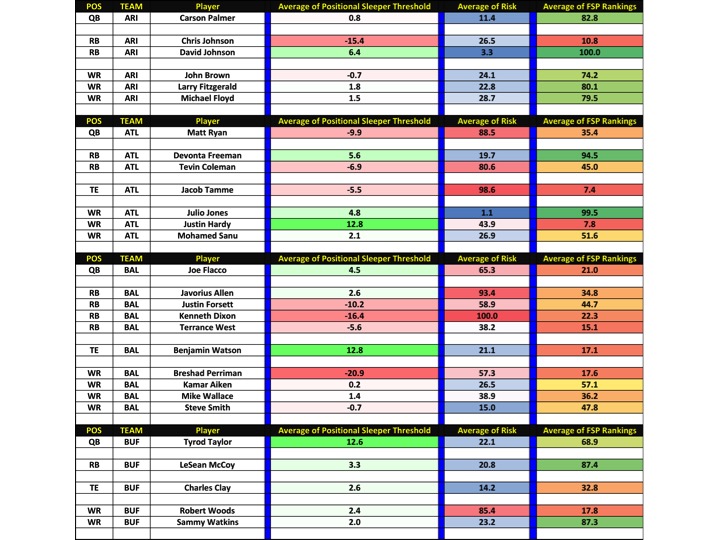 My Rankings 100 to 0 for Team Sleeper Numbers Average.